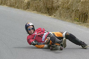 Stuart Bradburn of South Africa rips a Buttboard qualifying run on his Standup board. Any way to get more time on the track.