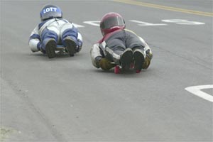 Typical German racer. Note the extensive use of pads and the motorcycle tire shoes.